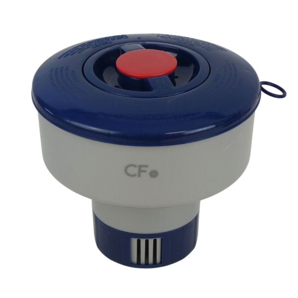Le doseur flottant CF est l’accessoire indispensable pour assurer une désinfection régulière et autonome de votre piscine. Conçu pour accueillir des galets de 200g à 250g, il permet une libération progressive des principes actifs dans l’eau du bassin. Grâce à sa bague de réglage située à la base, vous pouvez moduler l’ouverture des fentes de diffusion afin d’adapter le traitement au volume de votre piscine et à la température de l’eau, garantissant ainsi un taux de désinfectant toujours optimal.
