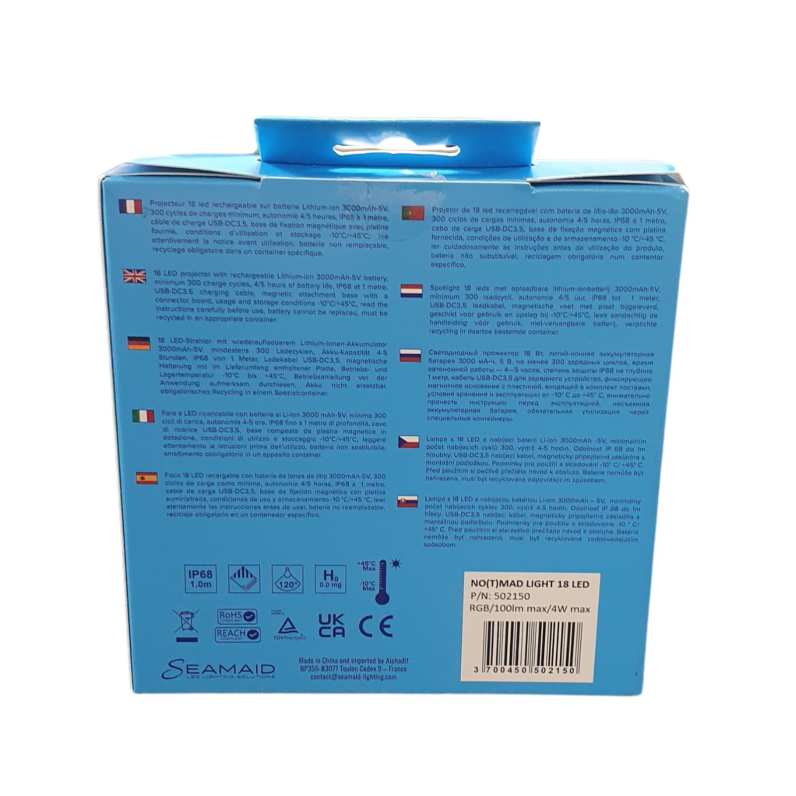 Le projecteur NOTMAD bleu clair LED RVB de SEAMAID est un éclairage portatif conçu pour s’adapter à toutes vos envies.